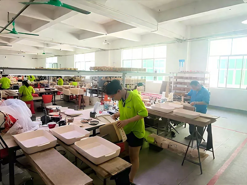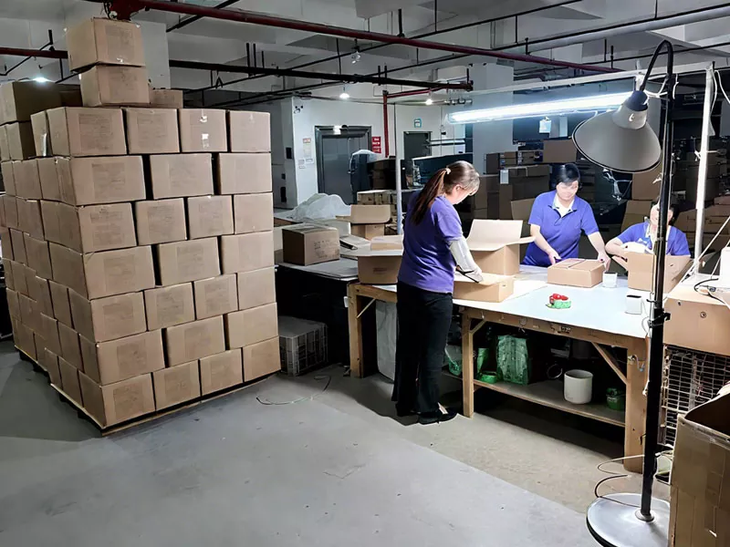 パッケージと配送を容易にするために、Dongguanの本部近くに独自の包装センターを設立しました。このセンターは、ガラスのキャンドルホルダーやディフューザーなどの壊れやすいアイテムのパッケージングソリューションを専門としています。カスタムボックスとライニングを作成できます。環境に優しい素材を使用して、ガラスディフューザーや装飾的なセラミックなどのアイテムを保護し、輸送中の安全性を確保します。
