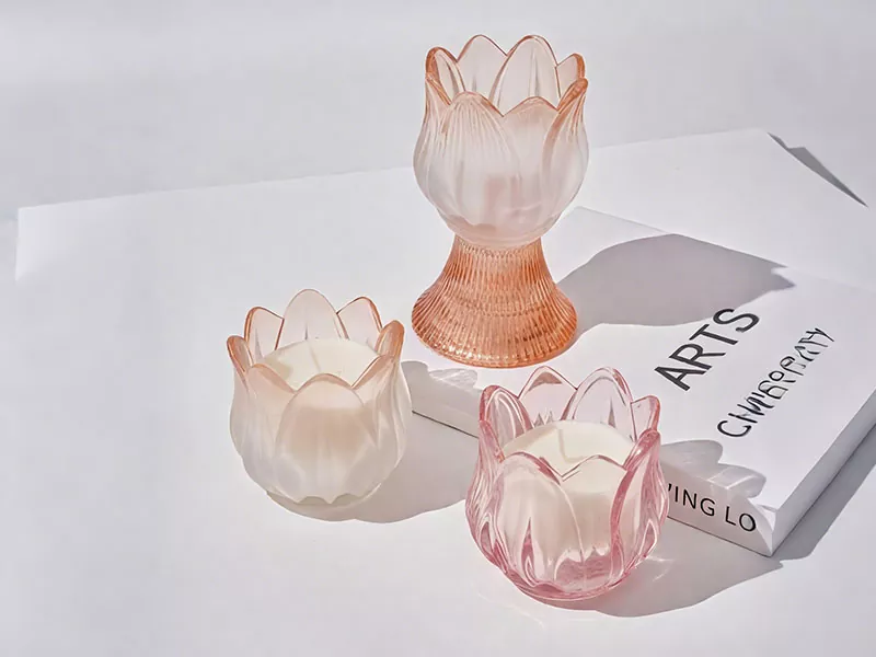 5. ガラスキャンドルホルダー:高級環境用の金/銀のアクセントを備えた強化ガラスオプション。