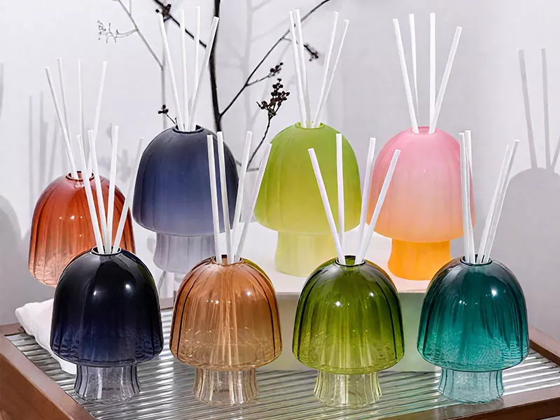 4。ディフューザー:洗練されたガラスディフューザーベースを備えたアロマディフューザー。