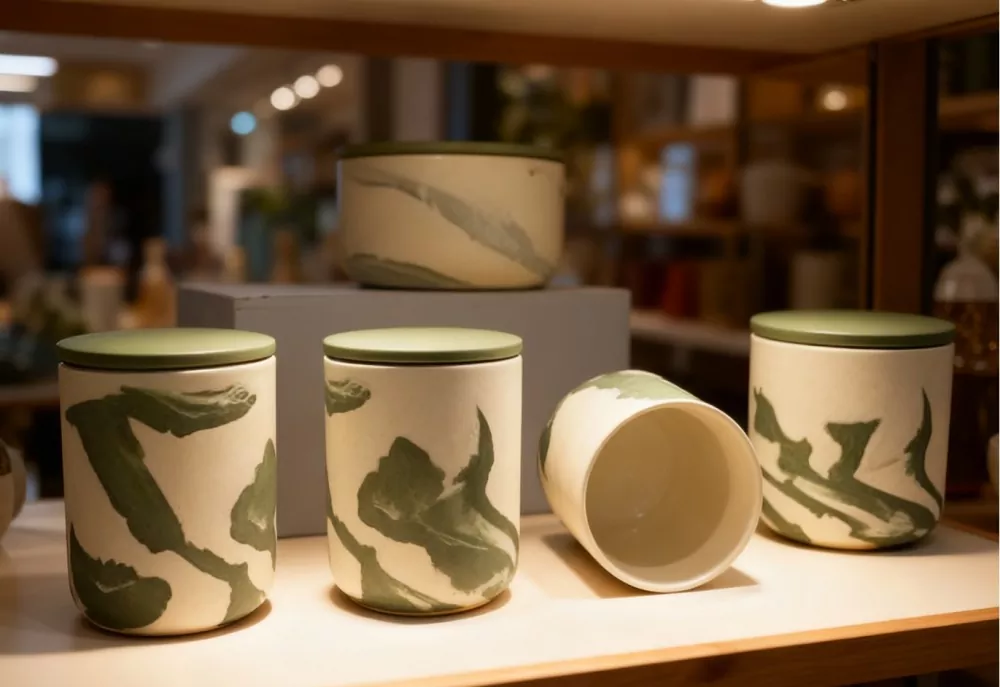 ナチュラルグリーンマーブルセラミックキャンドルジャー